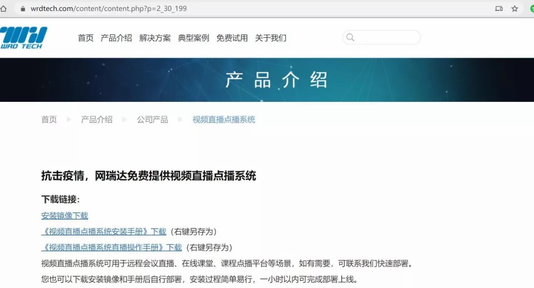 對于校園帶寬及硬件條件較好的用戶,也可選擇自行下載網(wǎng)瑞達(dá)視頻直播點(diǎn)播系統(tǒng)在本地安裝。疫情期間,網(wǎng)瑞達(dá)為所有用戶提供該系統(tǒng)免費(fèi)授權(quán)及相關(guān)技術(shù)支持,幫助高校更好地保障各業(yè)務(wù)正常運(yùn)行。