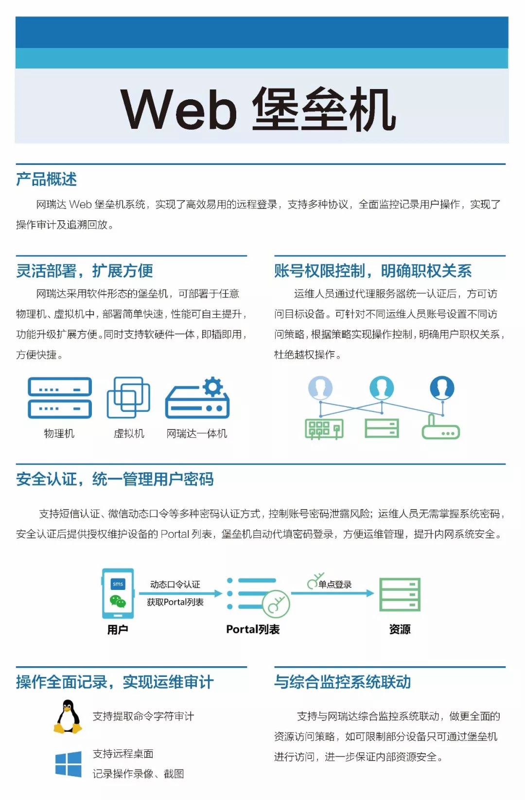 網(wǎng)瑞達Web堡壘機系統(tǒng),實現(xiàn)了高效易用的遠程登錄,支持多種協(xié)議,全面監(jiān)控記錄用戶操作,實現(xiàn)了操作審計及追溯會放。
