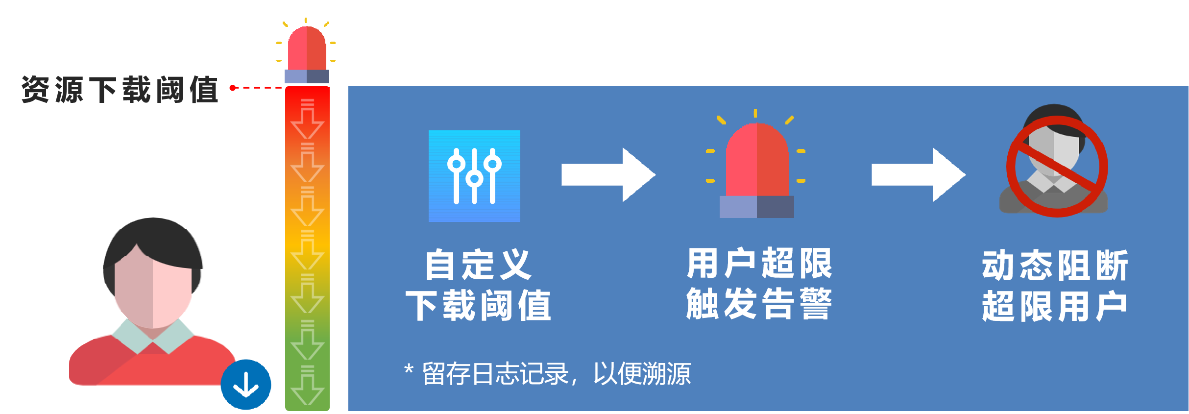 系統(tǒng)可對用戶的訪問請求進行分析,對惡意下載進行限速以及封禁,減少由于惡意用戶的惡意下載帶來的知識產權風險。