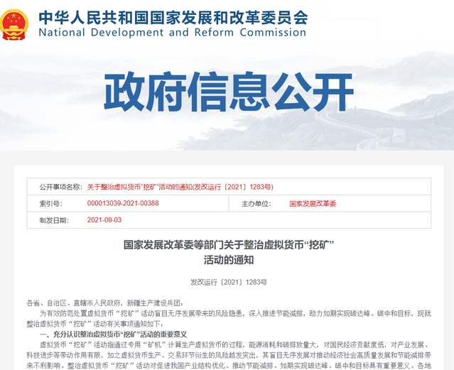 2021年9月國(guó)家已正式發(fā)布關(guān)于整治虛擬貨幣“挖礦”的通知,要求各省區(qū)市堅(jiān)決貫徹執(zhí)行,清理“挖礦”行為,并召集網(wǎng)信辦、教育部、工信部聯(lián)合開展嚴(yán)查國(guó)有單位的“挖礦活動(dòng)”。
